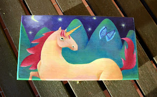 Realizado en acrílico y lápices acuarelables sobre madera.